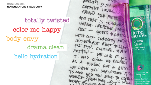 I helped define, direct and execute the Herbal verbal strategy, tone of voice and nomenclature over a number of years and through many new product and boutique launches, touching everything from positioning to packaging to promotions.